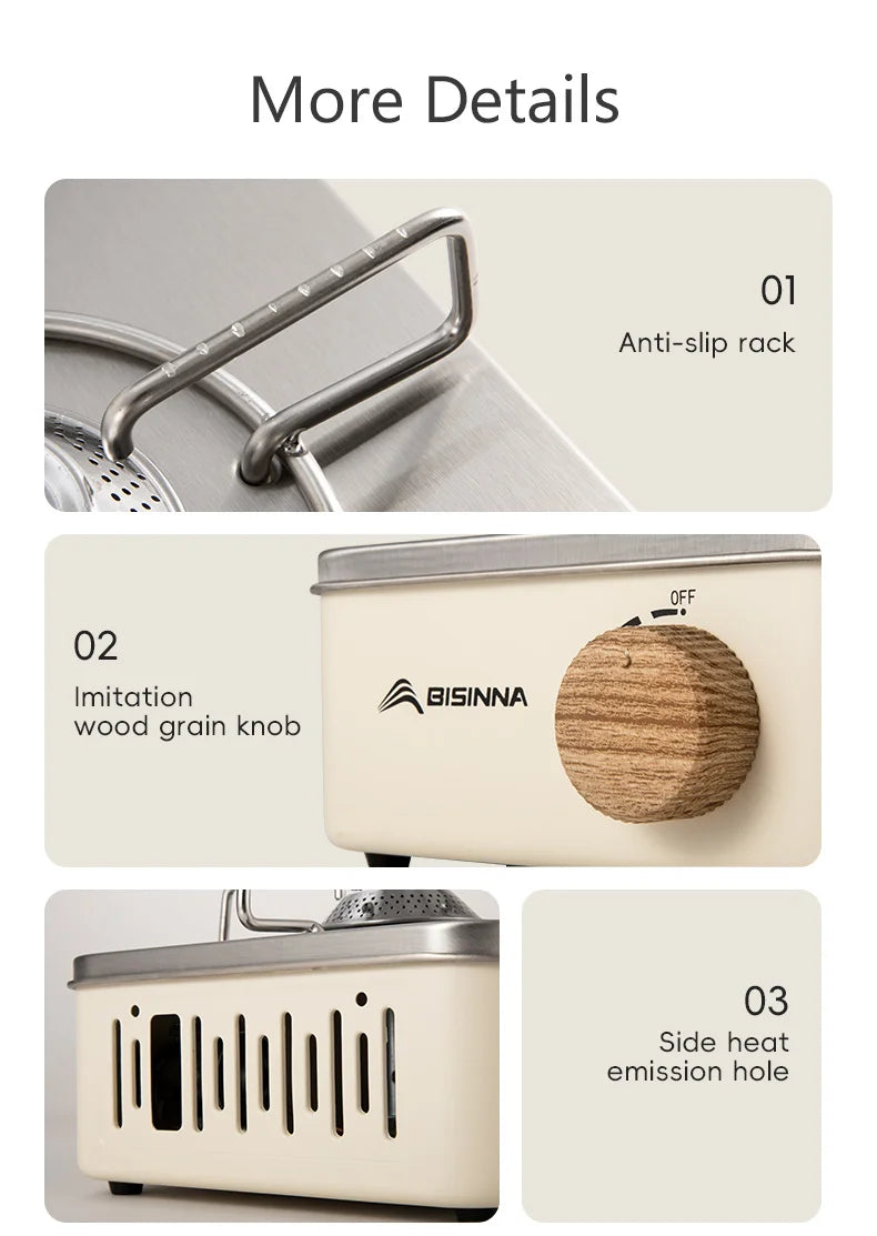 Designed with a pressure‑sensing safety shut‑off device. If the canister overheats or pressure becomes abnormal, the stove automatically ejects the canister and cuts the gas flow.
